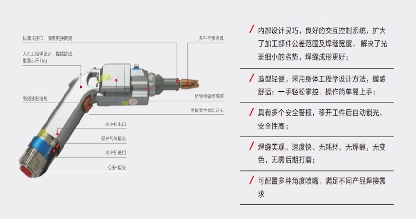 La soldadora láser portátil Serie HW se puede equipar con una máquina alimentadora de alambre, reduciendo los requisitos de holgura de las piezas y mejorando aún más la calidad de la soldadura. También se puede usar en combinación con robots colaborativos, fijando la antorcha de soldadura en el robot colaborativo para reducir la intensidad laboral del operador y mejorar la calidad de la soldadura de las costuras.