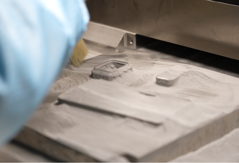 Es un proceso de sinterización basado en polvo. Se extiende una fina capa de polvo sobre la plataforma de construcción, y un láser fusiona selectivamente el polvo según la sección transversal de la pieza. El polvo no sinterizado actúa como estructura de soporte natural, lo que permite formar geometrías extremadamente complejas, incluidos componentes funcionales de nailon o moldes de fundición.
