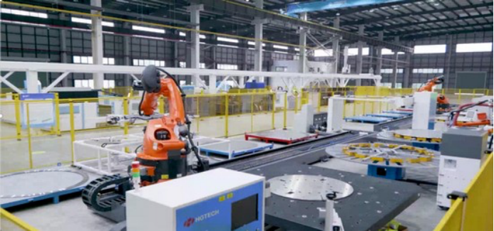 En octubre de 2024, se puso en marcha una línea de producción automatizada completa de electrolizadores alcalinos a nivel GW, desarrollada conjuntamente por HGTECH, que establece un referente para la industria. La primera fase del proyecto cuenta con una capacidad de 1 GW, y se planea ampliarla a 4 GW en el futuro, materializando los “cuatro estándares del 100%” de la fabricación inteligente: automatización total, autoevaluación de calidad, digitalización de productos e intercambio de información. El equipo core integra el sistema de soldadura láser robótica para placas electrodos de bastidor LAH3000R, que reemplaza la soldadura tradicional con protección de gas y resuelve problemas como la gran deformación de piezas de trabajo y la mala estanqueidad. Esta innovación aumenta la eficiencia de producción en un 40% en comparación con las líneas tradicionales, con un rendimiento de producción ≥99,5%.